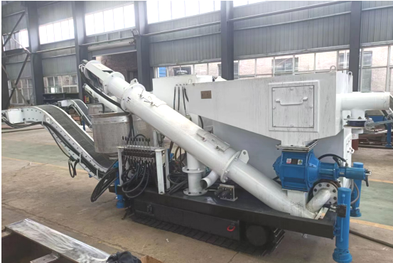 分離機(jī)具有結(jié)構(gòu)合理緊湊,操作簡單,板鏈輸送機(jī)可180°扇面自由定位旋轉(zhuǎn)、鏈速0-500mm/s可調(diào),螺旋脫水輸送機(jī)0-100r/min可調(diào)、脫水效果好,具有液壓履帶行走功能,因此該裝備移動(dòng)方便。